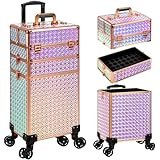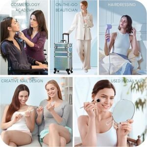- 【Portable for Her】: An ideal makeup rolling cart trunk to keep your dresser clean and tidy. It is elegant enough to store many good memories. It is very suitable for professional makeup artists, manicurists, hair stylists, beauticians, manicurists, tattooists or people with mountains of cosmetics.